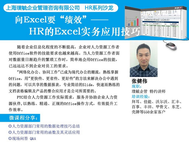 沙龍介紹: 隨著企業(yè)信息化程度的不斷提高,企業(yè)對(duì)人力資源工作者使用Office軟件的技能要求也越來(lái)越高。